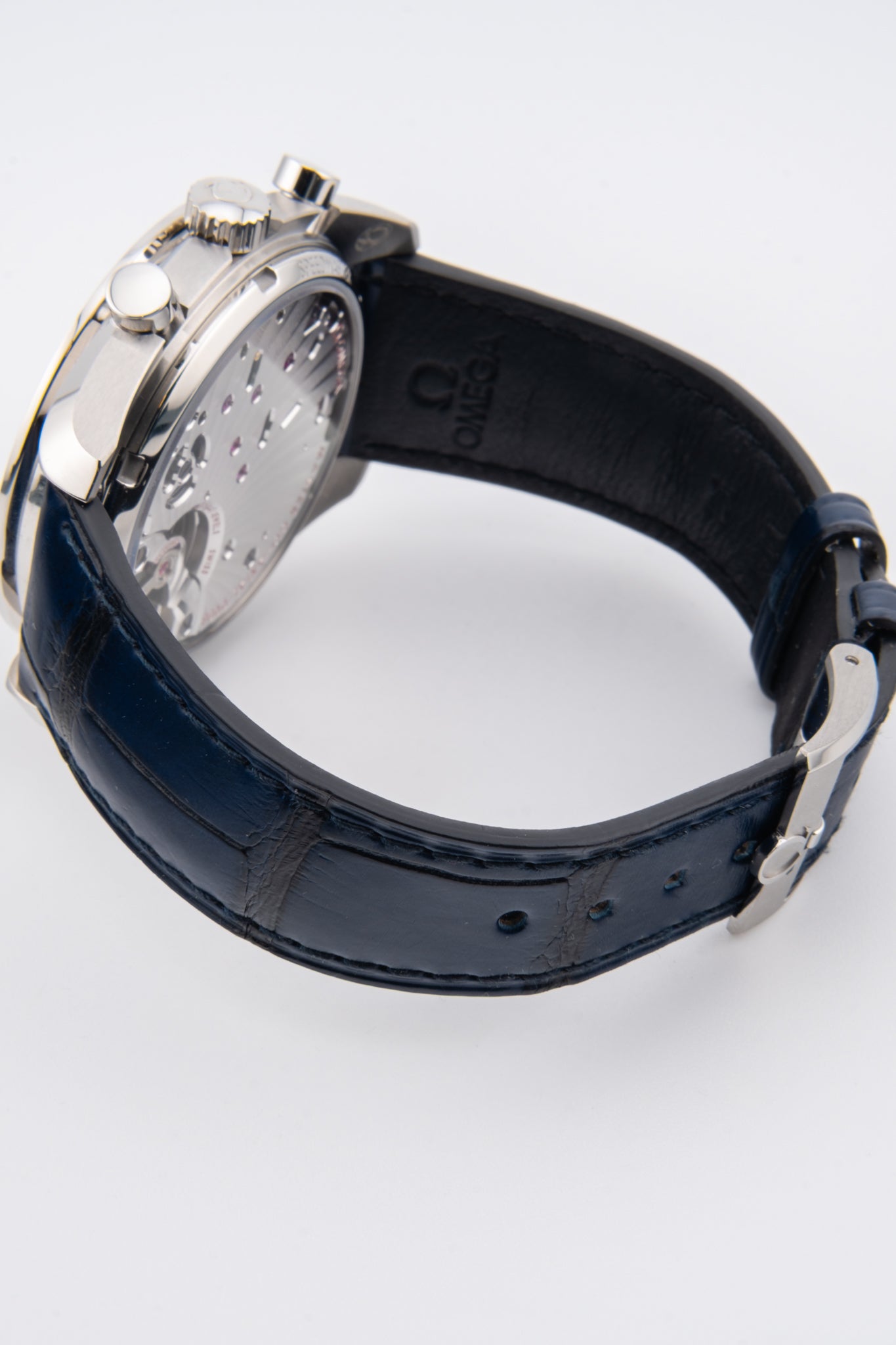 Zegarek napędzany jest manualnym mechanizmem Omega Co-Axial Master Chronometer Calibre 9908, certyfikowanym przez METAS, co gwarantuje najwyższy poziom precyzji, stabilności chodu i odporności na pola magnetyczne. Werk oferuje 60 godzin rezerwy chodu, pracuje z użyciem 44 kamieni łożyskujących i wykorzystuje wychwyt współosiowy Co-Axial, będący jednym z filarów nowoczesnej technologii Omegi. Mechanizm jest ręcznie zdobiony arabeskowym grawerem i widoczny przez przeszklony dekiel.
